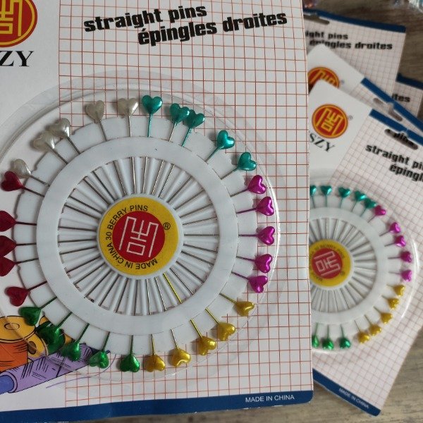 Blister con 30 unidades de alfileres con cabecita de corazón