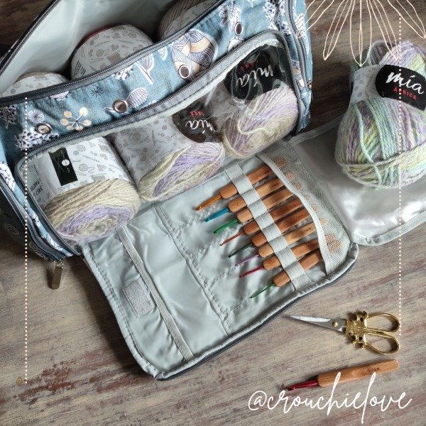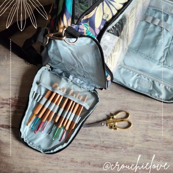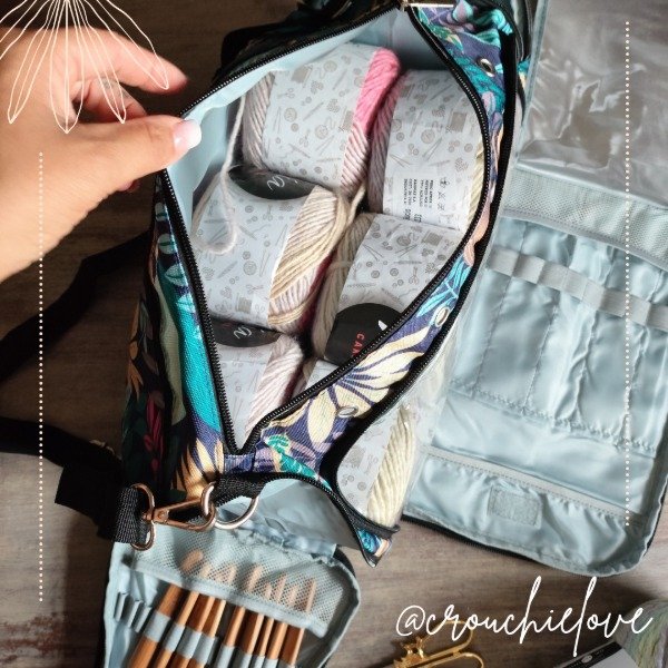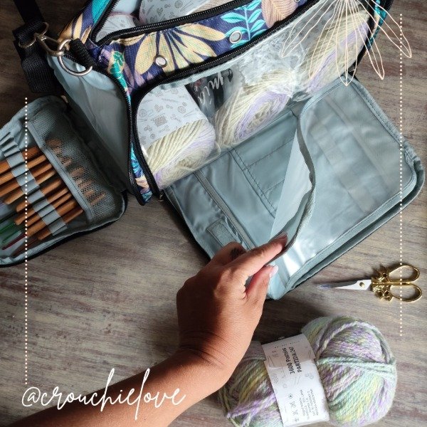 Bolso lanero con bolsillo organizador de agujas