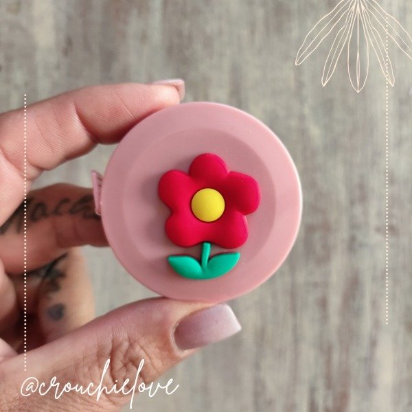 Cinta métrica de plástico y aplique de goma; con botón retráctil.