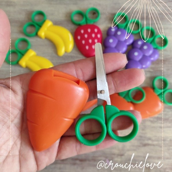 Tijera con punta de acero inoxidable. Envase de plástico con imán para adherir a la heladera. Ideal para manualidades (No es de precisión)